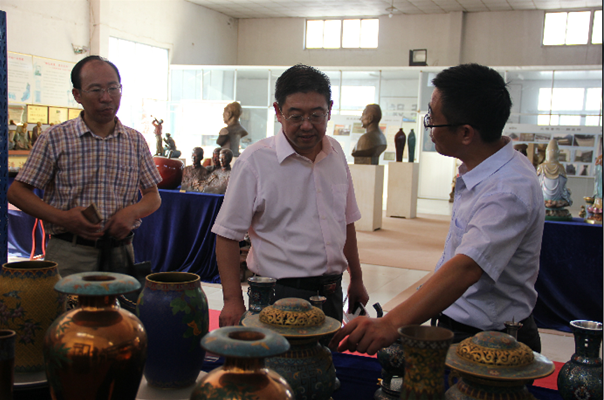 崔國發(fā)副書記與教授、博士一行深入車間一線認真了解銅工藝生產(chǎn)工藝,隨后在產(chǎn)品展示廳與公司負責人就公司發(fā)展和校企合作開展情況進行了交流。